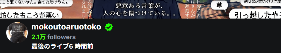 ゴシップ・裏話・時事ネタなど、ライブでのリアルタイム解説力が評価されており、Kickにおける“日本進出の象徴”的な存在となっています。